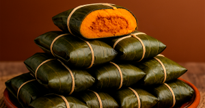 Corta las hojas de plátano en cuadros de unos 25×25 cm.